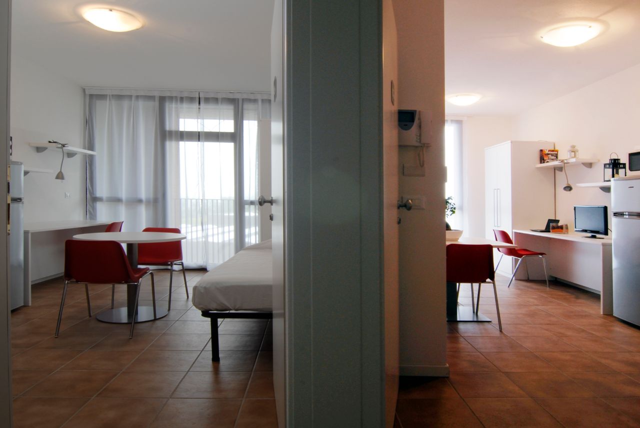I nostri monolocali “premium” sono dotati di piastre in vetroceramica di ultima generazione, di frigorifero maxi con cella freezer separata, TV LED da 22 pollici, telefono, internet Wi-Fi e, in alcuni, di letto alla francese da 120 cm. Ogni appartamento ha tra le proprie dotazioni il portoncino blindato, un angolo cottura completo, una zona giorno trasformabile in zona letto, un'area studio. Alcuni locali sono dotati di balconcino indipendente direttamente affacciato sul verde del campus.